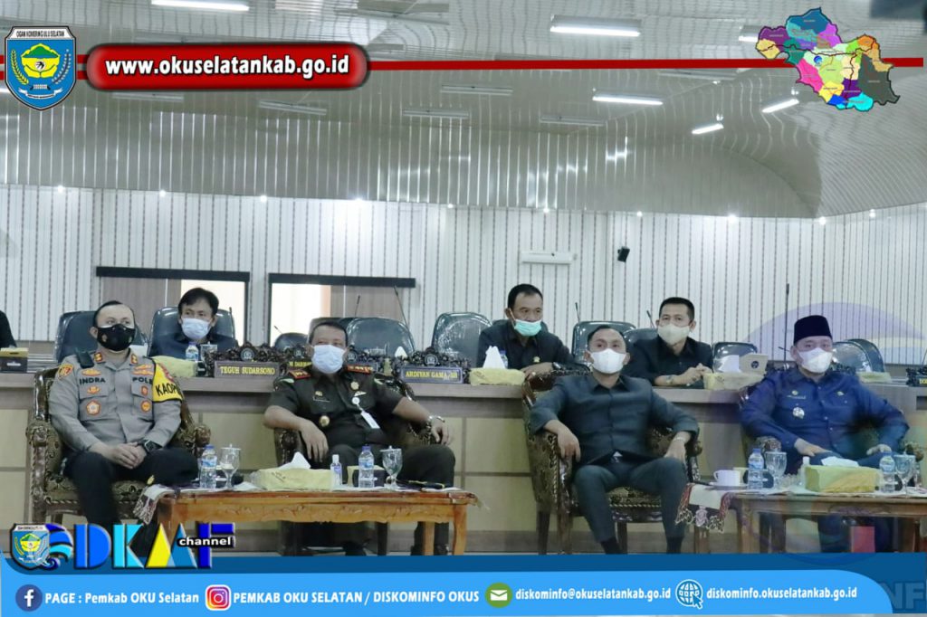 Turut hadir di Ruang Rapat Paripurna DPRD OKU Selatan, Ketua DPRD OKU Selatan serta Forkopimda dan Anggota DPRD OKU Selatan serta undangan lainnya.