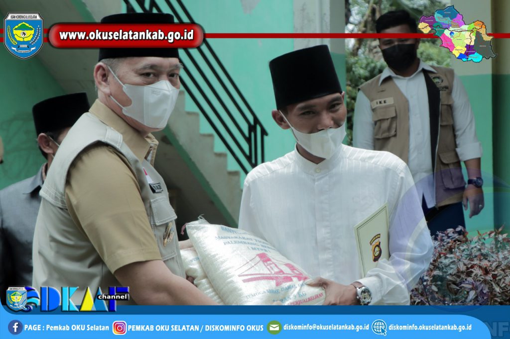 Selanjutnya Bupati dan Wakil Bupati OKU Selatan menyerahkan bantuan berupa Beras dan Bingkisan lainnya kepada pimpinan ponpes, Semoga bantuan ini bisa membantu memenuhi kebutuhan pangan dan bermanfaat bagi pondok pesantren.