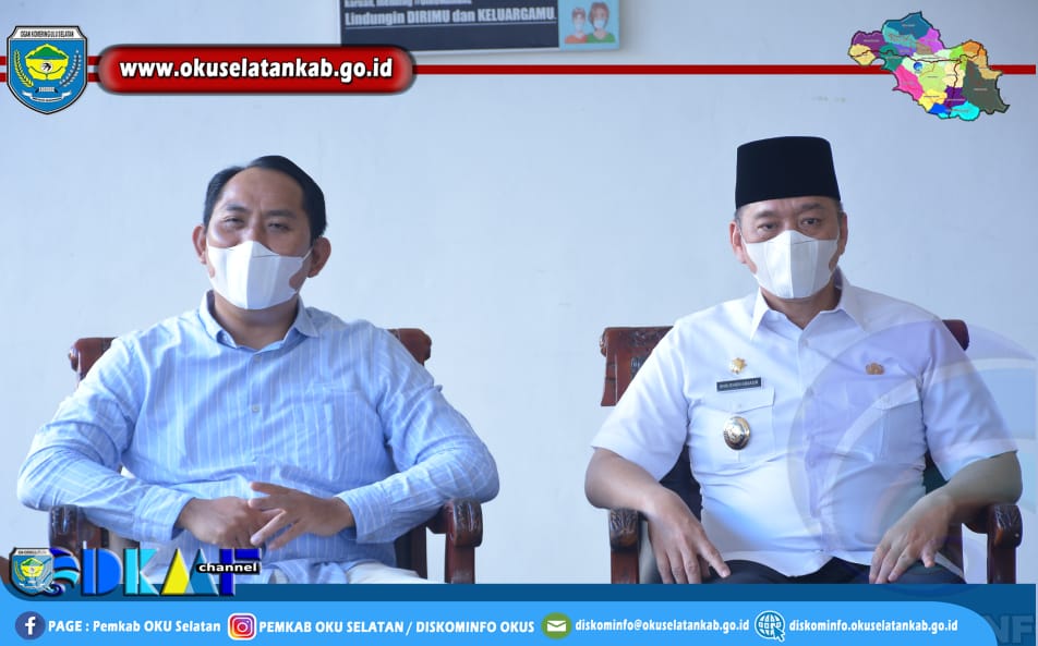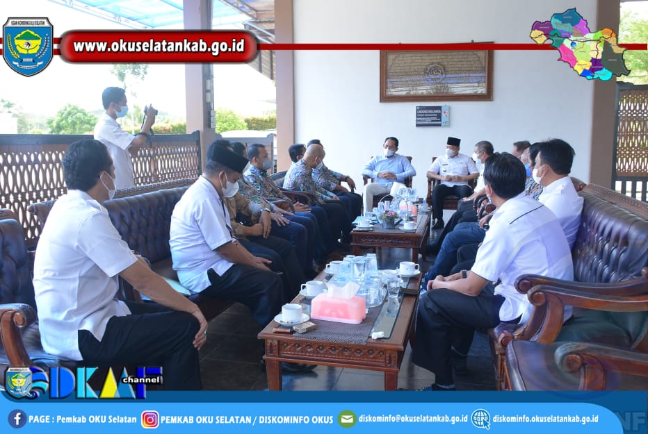 MUARADUA – Bupati Ogan Komering Ulu Selatan (OKUS), Popo Ali Martopo, B.Com., didampingi Wakil Bupati, Sholehien Abuasir, S.P., M.Si., beserta sejumlah kepala OPD menerima audiensi Kepala Balai Besar Wilayah Sumatera Selatan (B2WSS), Maryadi Utama, S.T., M.Si., di pendopoan Rumah Dinas Bupati OKU Selatan, Rabu (08/09/2021).