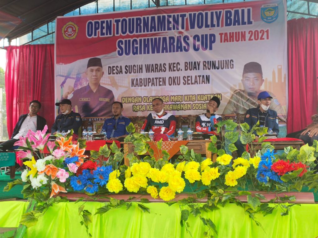Buay Runjung (11/09) Ketua Karang Taruna Kabupaten OKU Selatan Heri Martadinata, S.E. membuka secara resmi Open Tournament Volly Ball Sugih Waras Cup Tahun 2021, Sabtu (11/09/2021).
