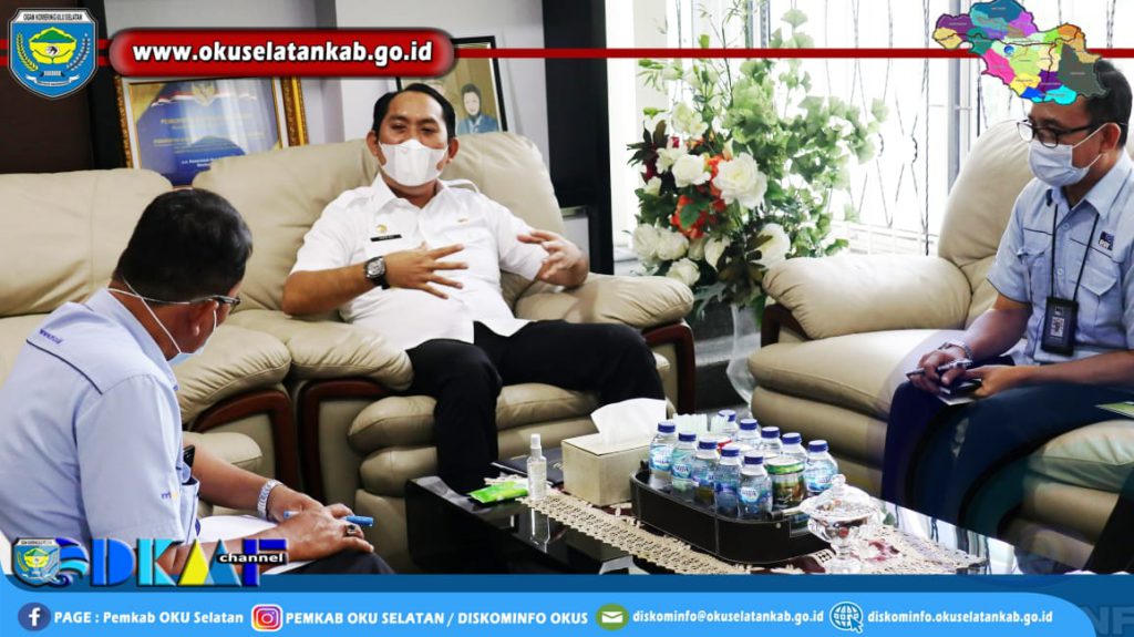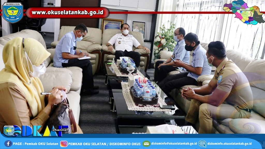 MUARADUA – Bupati Ogan Komering Ulu Selatan (OKUS) Popo Ali, M., B. Com., menerima Audiensi Wapimred RRI Palembang Dalam Rangka Kegiatan Publikasi Multi Event Porprov 2021 di ruang kerjanya, Selasa ( 05/10/2021 ).