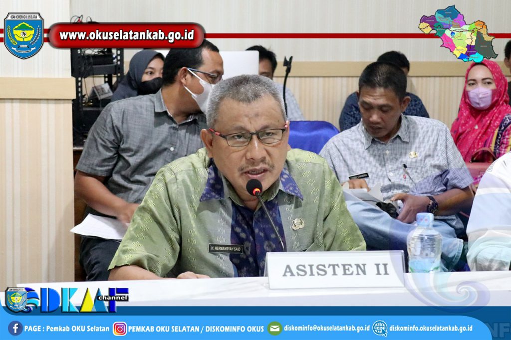 MUARADUA – Asisten II Sekta Kabupaten OKU Selatan, Hermansyah Said, S.Ip., menghadiri Rapat Forum Group Discussion (FGD) 2 Perihal Perumusan Isu Strategis Pembangunan Berkelanjutan Kabupaten OKU Selatan di Ruang Vidcon Dinas Kominfo OKU Selatan, Jumat (15/10/2021). Kegiatan ini juga diikuti oleh peserta lainnya dari instansi di lingkungan Pemkab OKU Selatan serta perwakilan Desa/Kelurahan.