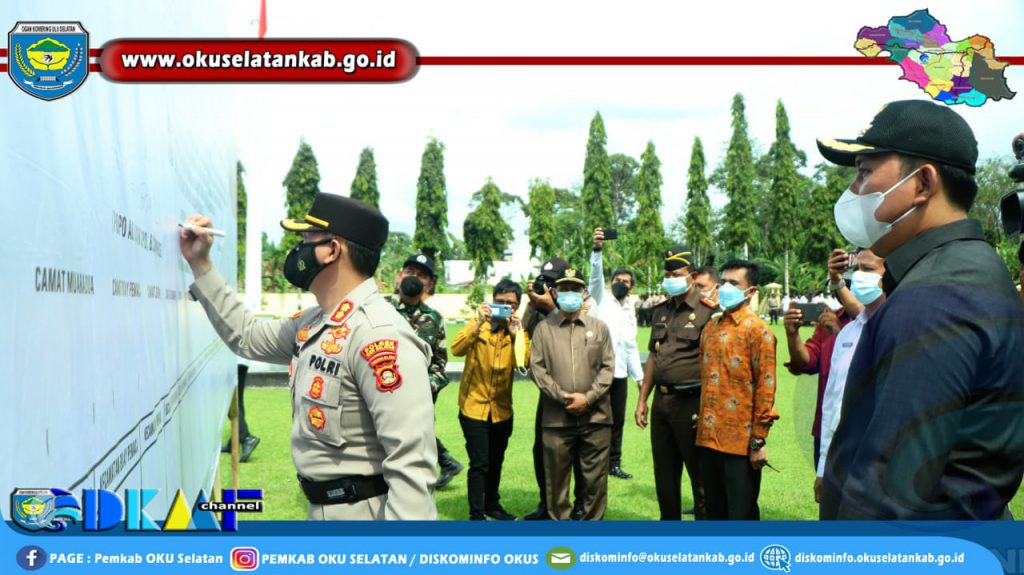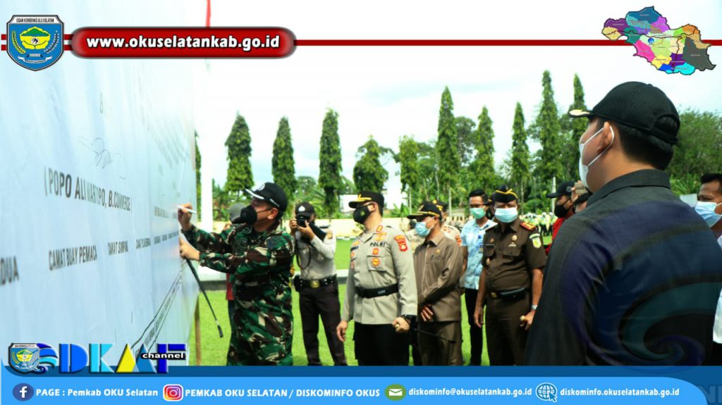 WUJUDKAN KOMITMEN BERSAMA SUKSESKAN PILKADES SERENTAK TAHUN 2021 DI OKU SELATAN, BUPATI BERSAMA FORKOPIMDA DAN PARA CALON KADES TANDATANGANI FAKTA INTEGRITAS KESEPAKATAN DAMAI