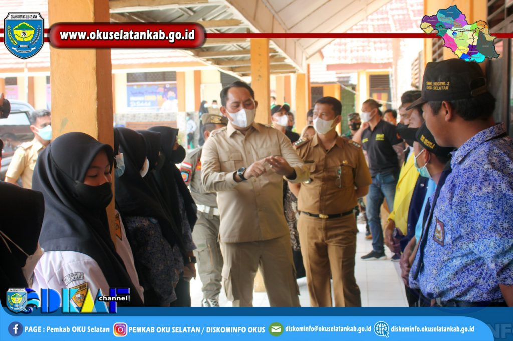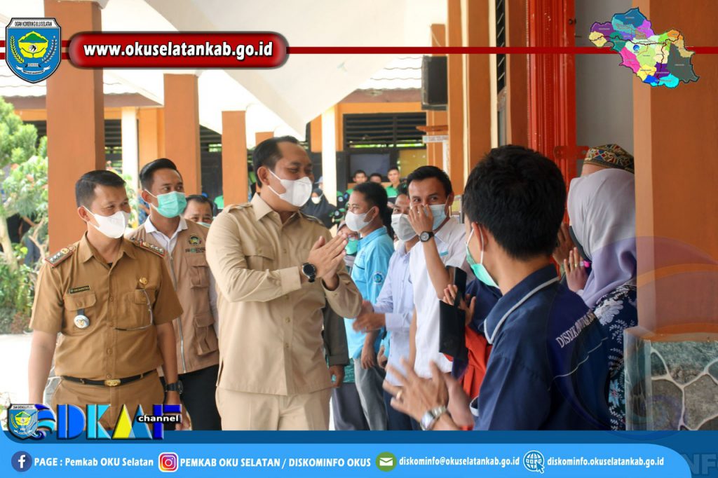 Hal ini salah satunya terlihat dari upaya vaksinasi yang terus digencarkan. Dan hari ini, Kamis (04/11/2021) sebelum kegiatan meninjau persiapan Porprov dan Sriwijaya Ranau Gran Fondo, Bupati OKU Selatan, Popo Ali Martopo, B.Com., didampingi sejumlah kepala OPD meninjau pelaksanaan vaksinasi COVID-19 di SMK Negeri 2 OKU Selatan yang diikuti oleh ratusan siswa.
