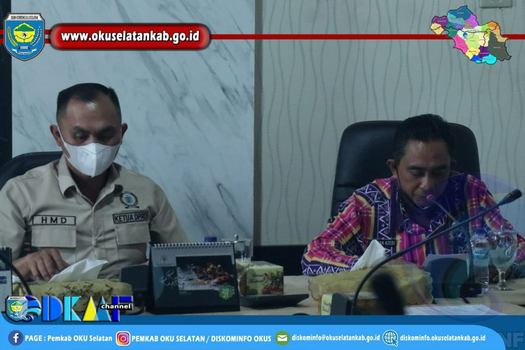 Rapat ini dipimpin langsung oleh Ketua DPRD Heri Martadinata,S.E. Dalam rangka membahas rancangan jadwal rapat paripurna DPRD masa persidangan pertama tahun sidang 2021-2022. Dalam rangka Pembahasan APBD Kabupaten OKU Selatan Tahun Anggaran 2022 dan 1 (satu) rancangan peraturan daerah Kabupaten OKU Selatan Tahun 2021 serta 1 (satu) Raperda Inisiatif DPRD Kabupaten OKU Selatan Tahun 2021.