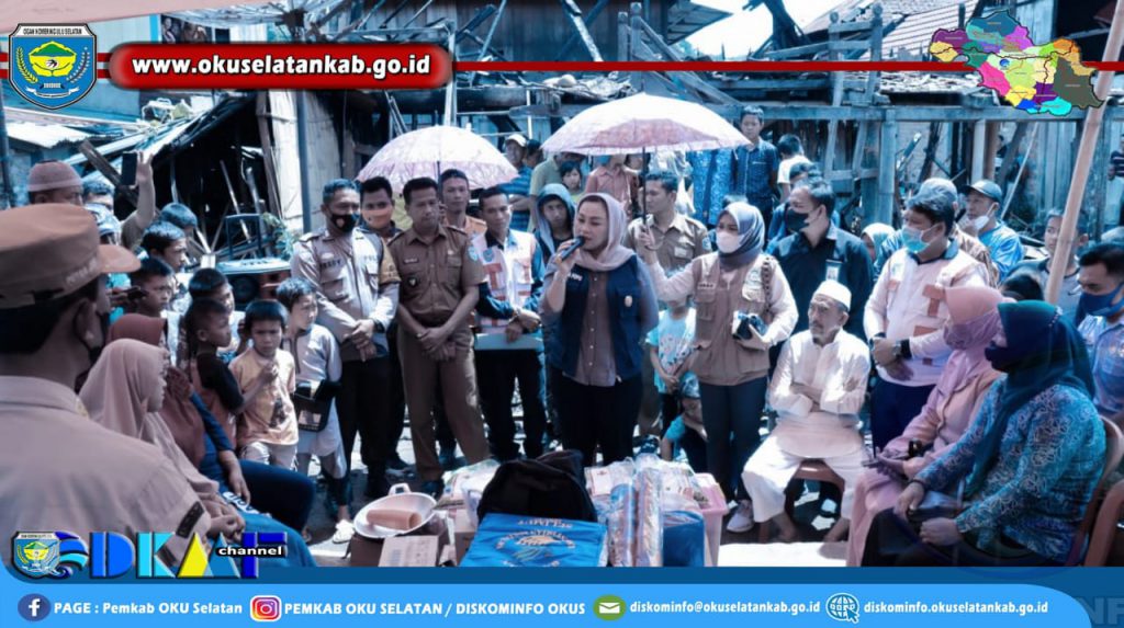 PULAU BERINGIN – Ketua TP PKK Kabupaten Ogan Komering Ulu Selatan (OKUS) yang juga sebagai Ketua PMI Kabupaten OKU Selatan, Isyana Lonitasari Popo hadir di tengah duka korban kebakaran di Desa Pulau Beringin, Kecamatan Pulau Beringin, Kamis (16/12/2021).