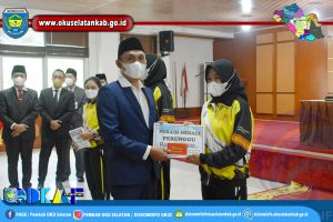 MUARADUA – Bupati Ogan Komering Ulu Selatan OKUS), Popo Ali M., B.Com., menyerahkan bonus berupa uang pembinaan kepada para atlet Kabupaten OKU Selatan yang berhasil meraih medali pada Pekan Olahraga Provinsi (Porprov) XIII tahun lalu, Jumat (07/01/2022) di Aula Pemkab OKU Selatan.