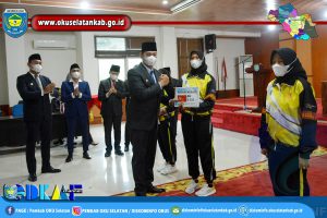 BERTEPATAN HUT KE-18 OKU SELATAN, BUPATI POPO ALI SERAHKAN BONUS UNTUK ATLET PERAIH MEDALI PORPROV SUMSEL 2021
