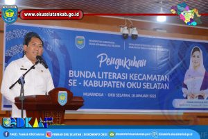 MUARADUA – Bupati Ogan Komering Ulu Selatan (OKUS), Popo Ali Martopo, B.Com., hadiri Pelantikan Ketua TP PKK Desa Periode 2021-2026 Kabupaten OKU Selatan serta kukuhkan Bunda Literasi 17 Kecamatan di OKU Selatan, Selasa (18/01/2022).