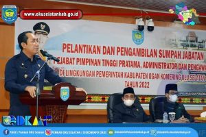MUARADUA – Bupati Ogan Komering Ulu Selatan Popo Ali M., B. Com. Melantik Pejabat Pimpinan Tinggi Pratama, Administrator dan Pengawas di lingkungan Pemerintah Kabupaten OKU Selatan, Senin (14/03/2022).