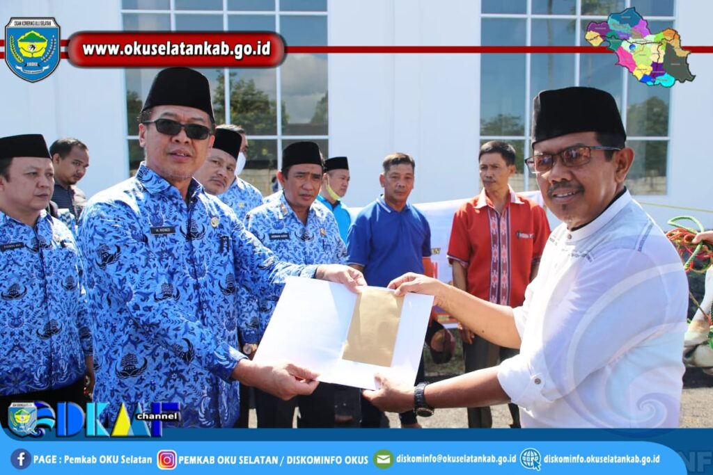 MUARADUA – Menyambut Idul Adha 1443 H, Ketua Korps Pegawai Republik Indonesia (KORPRI) Kabupaten Ogan Komering Ulu Selatan (OKUS), H. Romzi, S.E., M.Si., menyerahkan Hewan Kurban berupa dua ekor Sapi dan sejumlah uang kepada pengurus masjid Agung Al-Muhtadin Muaradua, Jumat (08/07/2022).
