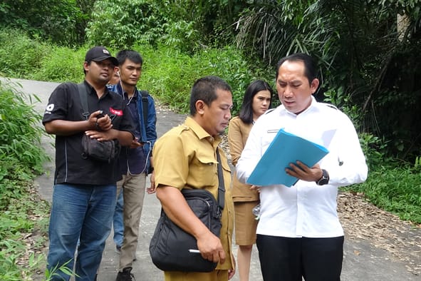 Tiba di lokasi, Bupati langsung berkoordinasi dengan pihak pemerintah desa setempat terkait kronologis ambruknya jembatan gantung sepanjang 165 meter yang melintang di atas Sungai Selabung ini.