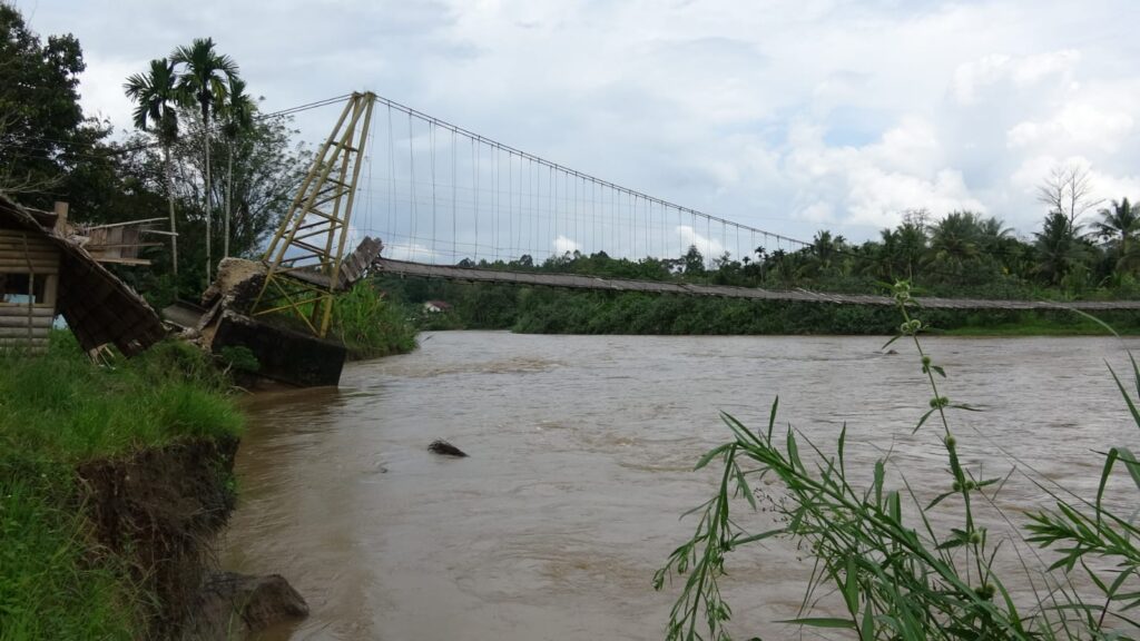 PEMKAB OKU SELATAN SEGERA BANGUN JEMBATAN BARU GANTIKAN JEMBATAN GANTUNG DESA SUKARAJA II YANG PONDASINYA AMBRUK