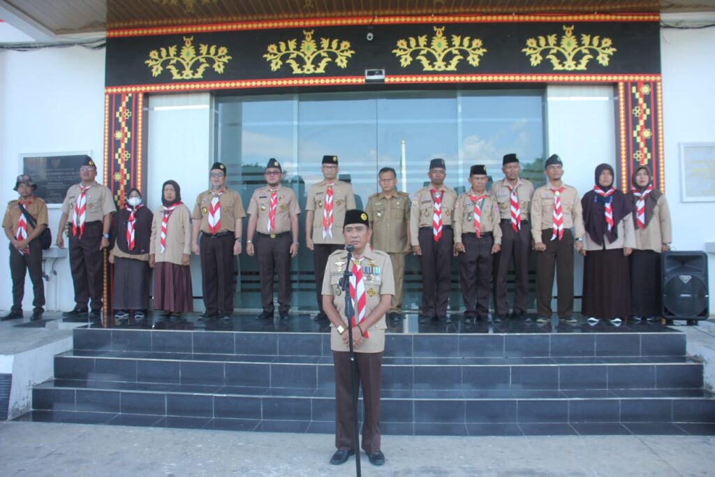 MUARADUA – Mewakili Bupati Ogan Komering Ulu Selatan (OKUS), Popo Ali Martopo, B.Com., Asisten 111 Bidang Administrasi Umum Ogan Komering Ulu Selatan, Drs. Herman Azedi, SKM.,M.M., pimpin pelepasan Kontingen Kabupaten OKU Selatan yang akan mengikuti Jambore Nasional XI tahun 2022, Kamis (11/08/2022), di Lapangan Pemkab OKU Selatan.