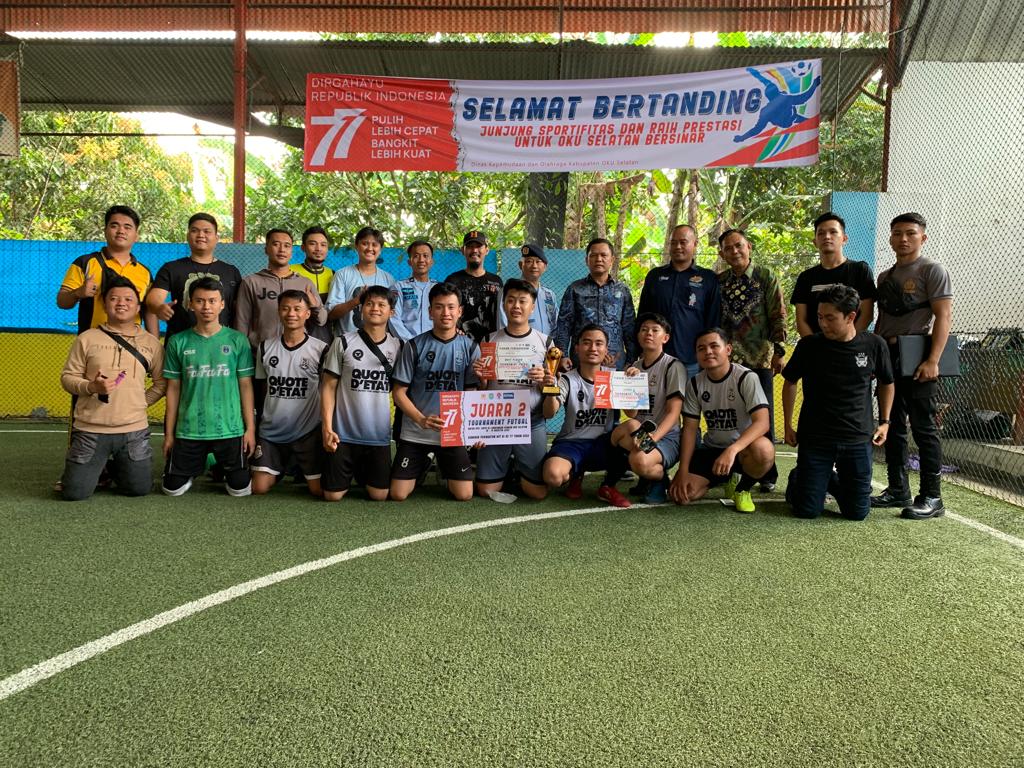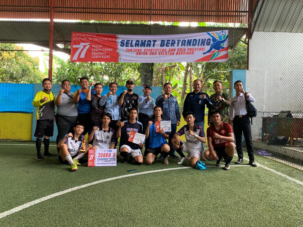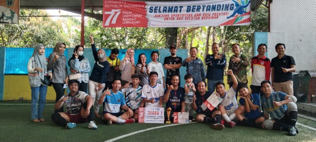 MUARADUA – Setelah melalui beberapa pertandingan yang berat, Perwakilan Dinas Kepemudaan dan Olahraga (Diskepora) Kabupaten Ogan Komering Ulu Selatan (OKUS) berhasil menjadi juara pada ajang turnamen futsal antar instansi di Kabupaten OKU Selatan yang digelar dalam rangka memeriahkan peringatan HUT Kemerdekaan Republik Indonesia ke-77.
