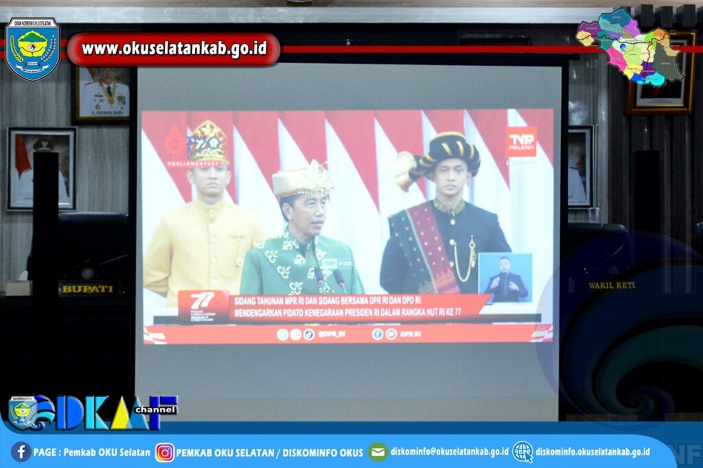WAKIL BUPATI OKU SELATAN DENGARKAN PIDATO KENEGARAAN PRESIDEN DALAM RANGKA PERINGATAN HUT KEMERDEKAAN RI KE-77