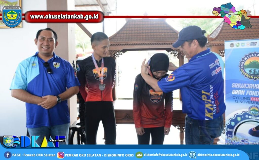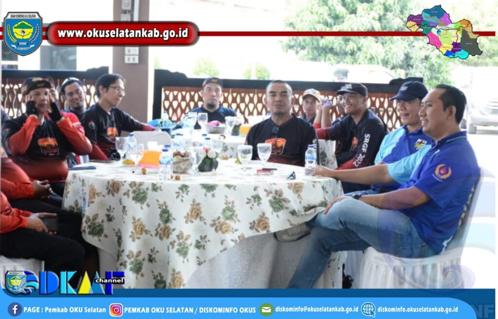 MUARADUA – Bupati Ogan Komering Ulu Selatan (OKUS), Popo Ali Martopo, B.Com,. didampingi Wakil Bupati Sholehien Abuasir, S.P., M.Si., menyambut kedatangan komunitas sepeda Gowes Baturaja yang datang ke pendopoan Rumah Dinas Bupati dalam rangka Road To Sriwijaya Ranau Gran Fondo 2022 (SRGF) Ekspedisi #3 Radja Gowes Baturaja, Sabtu (27/08/2022) siang.
