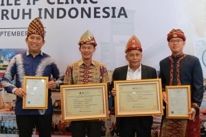 Sertifikat KIK diserahkan langsung oleh Plt. Dirjen KI Kemenkumham Ir. Razilu, M.Si., CGCAE., kepada Bupati OKU Selatan, Popo Ali Martopo, B.Com., dalam acara Penutupan Mobile Intellectual Property Clinic dan Penyerahan Sertifikat Kekayaan Intelektual oleh Kementerian Hukum dan HAM RI Kantor Wilayah Sumatera Selatan, Jumat (23/09/2022).