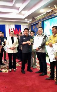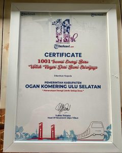 Palembang (14/07) Mewakili Bupati OKU Selatan Popo Ali M.,B.Comm. Asisten II Bidang Ekonomi dan Pembangunan Setda OKU Selatan Natalion, S.STP.,M.Si. menerima langsung Sertifikat 1001 Inovasi Energi Baru untuk Negeri dari Bumi Sriwijaya dalam Pemerataan Energi Listrik Setiap Desa, Kamis (13/07/2023).