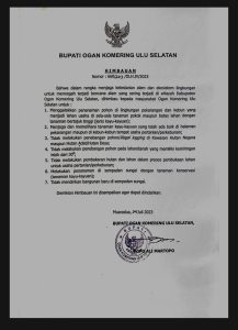 Bupati OKU Selatan Popo Ali Martopo, B.Comm. melalui Himbauan Nomor : 660/203/DLH.IV/2023 mengajak kepada seluruh lapisan masyarakat Kabupaten OKU selatan untuk menjaga kelestarian alam dan ekosistem lingkungan untuk menjaga dan mencegah terjadinya bencana alam yang sering terjadi di Wilayah Kabupaten OKU Selatan.