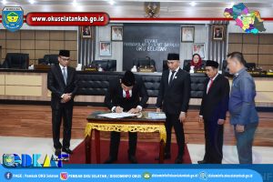 Selanjutnya, setelah Pembacaan Rancangan Berita Acara dan Keputusan Bersama yang disampaikan Sekretaris Dewan, dilanjutkan dengan Penandatanganan Berita Acara dan Keputusan Bersama tentang Persetujuan terhadap Raperda Pertanggungjawaban Pelaksanaan APBD Kabupaten OKU Selatan TA 2022 ditandatangani Ketua Dewan yang didampingi Sekretaris Dewan, serta ditandatangani Bupati OKU Selatan yang didampingi Sekretaris Daerah.
