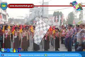 RATUSAN REGU GERAK JALAN UNJUK KEBOLEHAN PADA LOMBA GERAK JALAN PRAMUKA DI KABUPATEN OKU SELATAN