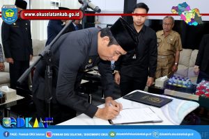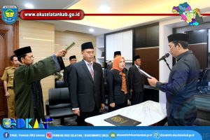 MUARADUA – Bupati Kabupaten Ogan Komering Ulu Selatan (OKUS), Popo Ali Martopo, B.Comm., melantik dan mengambil Sumpah Jabatan Pimpinan Tinggi Pratama di Lingkungan Pemerintah Kabupaten (Pemkab) OKU Selatan, Senin (23/10/2023) di Ruang Kerja Bupati OKU Selatan.