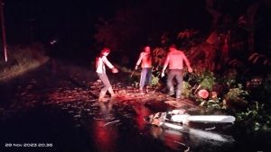 Pohon Tumbang yang disebabkan oleh Tingginya Intensitas Hujan disertai Angin Kencang pada (Selasa/28/11/2023) Sekira Pukul 19.51 Wib.
