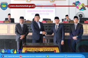 MUARADUA – Bupati Kabupaten Ogan Komering Ulu Selatan (OKUS), Popo Ali Martopo, B.Commerce., hadiri Rapat Paripurna DPRD Kabupaten OKU Selatan dengan agenda, Penyampaian Laporan Panitia Khusus terhadap Pembahasan Raperda Kabupaten OKU Selatan Tahun 2023 kepada Pimpinan DPRD, Permintaan Persetujuan secara lisan Pimpinan Rapat kepada Anggota DPRD, Pembacaan Rancangan Keputusan Persetujuan Bersama DPRD dan Kepala Daerah terhadap Raperda Kabupaten OKU Selatan Tahun 2023, Penandatangan Keputusan Persetujuan bersama DPRD dan Kepala Daerah terhadap Raperda Kabupaten OKU Selatan Tahun 2023, dan penyampaian Pendapat Akhir Bupati OKU Selatan, senin (04/12/2023), di Aula Islamic Centre Kabupaten OKU Selatan.