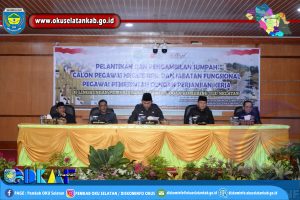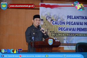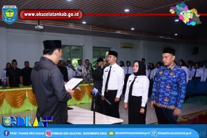 MUARADUA – Bupati OKU Selatan Popo Ali M.,B.Com., Melantik dan Mengambilan Sumpah / Janji Calon PNS, Pegawai Pemerintah dengan Perjanjian Kerja dan Pejabat Fungsional di Lingkungan Pemerintah Kabupaten OKU Selatan, Tahun 2024, Bertempat di Aula Serasan Seandanan Pemkab OKU Selatan, Rabu (22/05/2024).