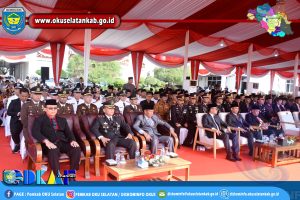Dalam rangkaian upacara peringatan HUT Kemerdekaan Republik Indonesia ini, dilakukan penyerahan penghargaan Satyalancana kepada para pegawai atas pengabdian di Lingkungan Pemkab OKU Selatan.