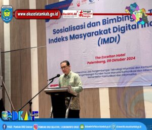 Palembang – Kepala Dinas Komunikasi dan Informatika Kabupaten OKU Selatan Zakiah, S.E., M.M. bersama Admin Bidang TIK ikuti Sosialisasi dan Bimbingan Teknis Indeks Masyarakat Digital (IMDI) di Sumatera Selatan yang digelar oleh Balai Pengembangan Sumber Daya Manusia dan Penelitian Telekomunikasi dan Informasi (BPPTIK) Kementerian Komunikasi dan Informatika Republik Indonesia, Rabu (09/10/2024).