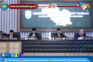 Muaradua – Bupati OKU Selatan H. Popo Ali Martopo., B.Comm. sampaikan Pidato Pengantar Rancangan APBD Kabupaten OKU Selatan Tahun Anggaran 2025 dan Propemperda Kabupaten OKU Selatan Tahun 2025 serta Raperda Kabupaten OKU Selatan Tahun 2024 pada Rapat Paripurna Dewan Perwakilan Rakyat Daerah (DPRD) Kabupaten Ogan Komering Ulu Selatan Dalam Rangka Pembahasan Rancangan Kua dan PPAS APBD Kabupaten OKU Selatan Tahun Anggaran 2025 dan Propemperda Kabupaten OKU Selatan Tahun 2025, Jumat (15/11/2024).