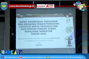 MUARADUA – Asisten Bidang Pemerintahan dan Kesejahteraan Rakyat OKU Selatan Joni Raples AP., MSi., pimpin rapat Koordinasi Persiapan dan kesiapan Pendistribusian Logistik, masa tenang serta Pembersihan APK (Alat Peraga Kampanye) Pada Pemilihan Serentak Tahun 2024, Jumat ( 22/11/2024 ).