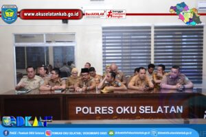 Muaradua – Usai pimpin Apel Pagi bersama Jajaran Polres OKU Selatan, Bupati OKU Selatan Abuasama, S.H. bersama Kapolres OKU Selatan AKBP M. Khalid Zulkarnaen, S.I.K.,M.H. mengikuti Rapat Koordinasi (Rakor) Pengendalian Inflasi di Daerah Tahun 2025 dirangkaikan dengan Akselerasi Sertifikasi Produk Halal secara virtual di Aula Sertu Pol Hadinata Polres OKU Selatan, Selasa (04/03/2025).