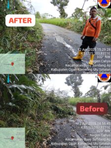 BUAY SANDANG AJI- Pemerintah Kabupaten OKU Selatan melalui Tim gabungan Badan Penanggulangan Bencana Daerah (BPBD) Kabupaten Ogan Komering Ulu (OKU) Selatan, Sumatera Selatan mengevakuasi bencana Pohon Tumbang di Desa Negeri Cahaya Kecamatan Buay Sandang Aji, Sabtu 12/04/2025).
