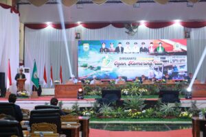 Rapat berlangsung di Ruang Sidang Utama DPRD OKU dan dihadiri oleh unsur pimpinan DPRD, anggota dewan, Forkopimda, kepala OPD, serta tamu undangan lainnya.