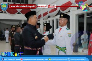 MUARADUA – Bupati Ogan Komering Ulu Selatan (OKUS), Abusama, S.H. mengukuhkan Paskibraka yang akan bertugas pada Upacara Peringatan Detik-detik Proklamasi Kemerdekaan Republik Indonesia yang Ke-80 di Kabupaten OKU Selatan, Jumat malam (15/08/2025).