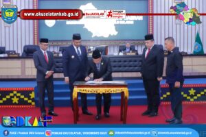 MUARADUA – Bupati OKU Selatan Abusama, S.H. menghadiri Rapat Paripurna DPRD Kabupaten OKU Selatan sekaligus menandatangani Berita Acara Persetujuan Bersama Raperda tentang Perubahan Anggaran Pendapatan dan Belanja Daerah (APBD) Tahun Anggaran 2025, Jumat (26/09/2025).