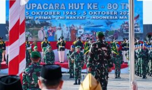 Peringatan HUT ke-80 TNI tahun ini mengusung tema “TNI Prima, TNI Rakyat, Indonesia Maju”, yang menjadi momentum penting untuk memperkuat sinergi antara TNI, pemerintah daerah, dan seluruh elemen masyarakat dalam menjaga kedaulatan, keamanan, serta stabilitas nasional dan daerah.