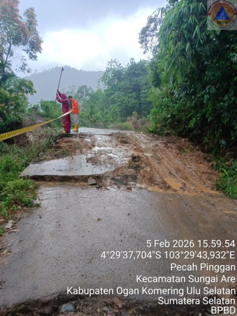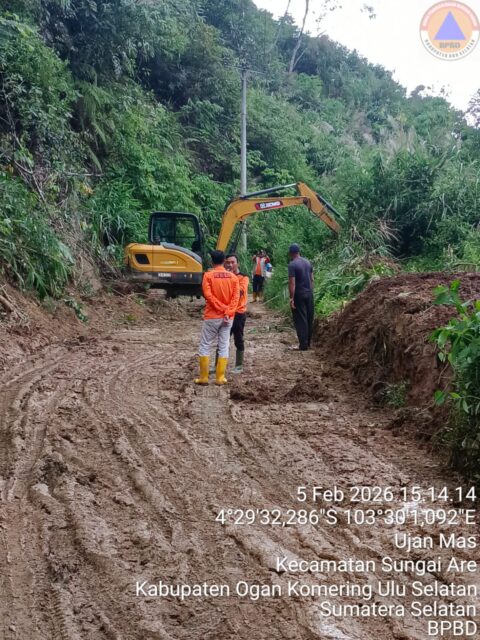 MUARADUA – Pemerintah Kabupaten Ogan Komering Ulu Selatan melalui Badan Penanggulangan Bencana Daerah (BPBD) meninjau langsung lokasi bencana tanah longsor dan jalan amblas di ruas jalan provinsi Sumatera Selatan yang menghubungkan Desa Ujan Mas dengan Desa Sadau, Kecamatan Sungai Are, Kamis (6/2/2026).