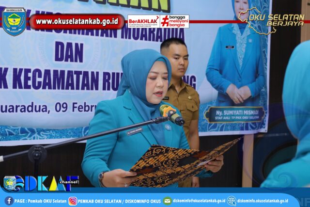 MUARADUA – Ketua TP PKK Kabupaten OKU Selatan Ny. Yohana Yuda Yanti Abusama, S.E., melantik secara resmi Ketua Tim Penggerak PKK Kecamatan Muaradua dan Kecamatan Runjung Agung, Senin (09/02/2025).
